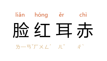 亦作“脸红耳热”。 荒煤 《父子书记》一:“他忽然像被人窥破秘密似地脸红耳热了。”