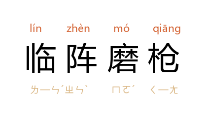 引《红楼梦·第七一回》:「王夫人便道:『临阵磨枪,也中用!有这会子著急,天天写写念念,有多少顽不了的!』」
