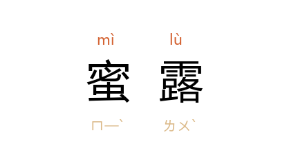 引南朝 梁简文帝 《南郊颂》:“朝叶与蜜露共鲜,晚花与薰风俱落。”宋 苏轼 《赵昌四季·山茶》诗:“游蜂略尽粉丝黄,落蕊犹收蜜露香。”