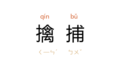 引唐 韩愈 《论捕贼行赏表》:“狂贼伤害宰臣,擒捕未获。”《宋史·职官志七》:“巡检司……掌训治甲兵,巡逻州邑,擒捕盗贼。”清 纪昀 《阅微草堂笔记·滦阳消夏录一》:“方部署伪官,事已洩,官军擒捕,围而火攻之。”