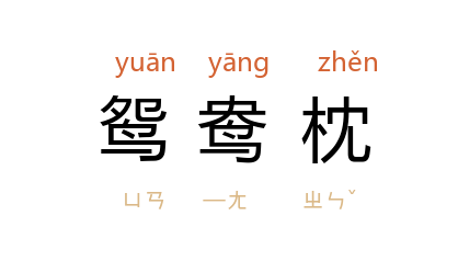 亦省称“鸳枕”。 唐 杨衡 《咏春色》:“夕迷鸳枕上,朝漫綺弦中。”