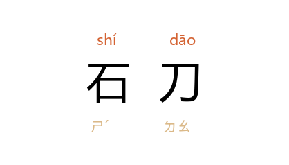 ⒈ 以石磨制作的刀。刀背有两个小孔,可供系绳用。多用来割稻。