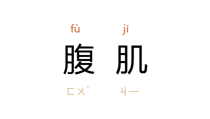 ⒈ 分布于腹部的肌肉,用以保护腹内器官,并有助呼吸、排泄等作用,分外斜肌、内斜肌、横腹肌、直腹肌四层。