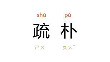 ⒈ 亦作“疏朴”。亦作“疎朴”。亦作“疎朴”。