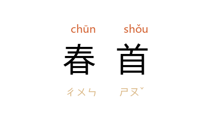 引唐 韩愈 《为宰相贺雪表》:“去岁冬间,雨雪颇少,今年春首,宿麦未滋。”宋 吴自牧 《梦粱录·祠祭》:“郊祀在 嘉会门 外三里 净明院 左右,春首上辛祈穀、四月夏雩、冬至冬报,皆郊坛行礼。”《宋史·河渠志五》:“兴元府 褒斜谷 口古有六堰,浇溉民田,顷亩浩瀚,每春首随食水户田亩多寡,均出夫力修葺。”