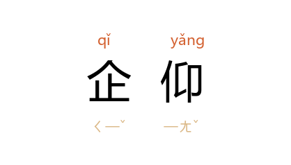 引《陈书·宣帝纪》:“朕企仰前圣,思求讼平,正道多违,浇风靡乂。”宋 王安石 《上郎侍郎书》:“庶几进望庭下,解积年企仰之意。”清 黄宗羲 《明文案序下》:“当 空同 之时, 韩、欧 之道如日中天,人方企仰之不暇。”郭沫若 《羽书集·发挥大无畏的精神》:“我们有好些人在焦躁中企仰着外国的伟大作家。”
