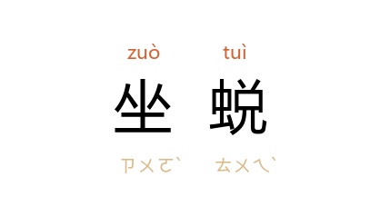 引唐 皮日休 《伤开元观顾道士》诗:“协晨宫 上啟金扉,詔使先生坐蜕归。”宋 吴曾 《能改斋漫录·神仙鬼怪》:“上元醮罢,语及死生之际,翌日坐蜕。”明 袁宗道 《衡阳邹先生墓志铭》:“已乃正席,手一编倏然而逝,人疑先生坐蜕云。”