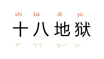 ⒈ 亦作“十八埊狱”。即十八层地狱。