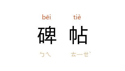 ⒉ 古代书法家留传后代的书法,刻于石碑者称之为「碑」,写于纸绢者称之为「帖」。