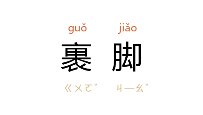 ⒈ 旧时,把女孩子的脚用长布紧紧地缠住,使脚骨变成畸形。