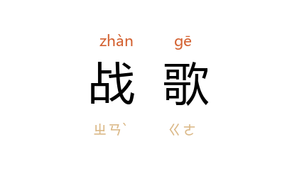 引田间 《给一位母亲》诗:“母亲你呵,招着手,和我们一起唱着战歌。”魏巍 《谁是最可爱的人·这里是今天的东方》:“在危急的战斗中,一边打机关枪,一边高唱着战歌的是他们。”吴组缃 《山洪》三十:“最后是几个游艺节目,镇口土著游击队唱战歌。”
