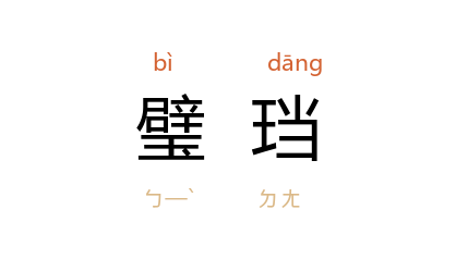 ⒈ 屋椽头的装饰。以璧饰之,故称。《文选·司马相如〈上林赋〉》:“华榱璧珰,辇道纚属。”郭璞注引韦昭曰:“裁金为璧以当榱头也。”张铣注:“璧珰,以璧饰椽首也。”一说指瓦当。见《史记·司马相如列传》司马贞索隐引司马彪曰。