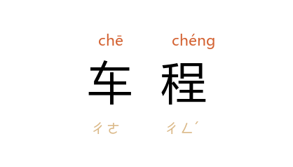 ⒈ 车(一般指汽车)行驶的路程(用于表示道路的远近):从广州到深圳,大约有三个多小时的车程。