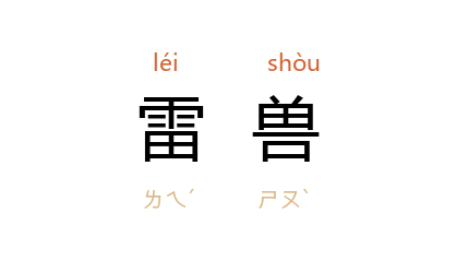 引黄帝 得之,以其皮为鼓,橛以 雷兽 之骨,声闻五百里,以威天下。”郭璞 注:“雷兽 即雷神也,人面龙身,鼓其腹者。”