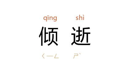 引《八琼室金石补正·唐曹氏谯君夫人墓志铭》:“岂谓石破山崩,奄从倾逝!”明 方孝孺 《与郑叔度书》:“所可憾者,太常丈及 范先生 皆倾逝。”明 无名氏 《再生缘》第二折:“西宫 李夫人 昨已倾逝了,圣上慟哭,声振后宫。”