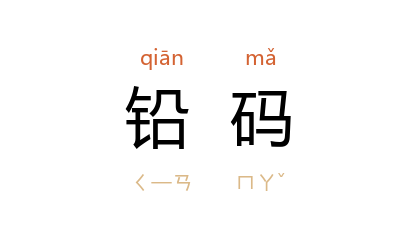 引中国近代史资料丛刊《太平天囯·行军总要》:“妖魔或装红粉铅码,埋藏地下。”清 张德坚 《贼情汇纂·伪军制下》:“枪礮子改称铅码,火药改称红粉。”
