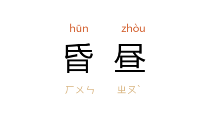 引唐 杜甫 《九日寄岑参》诗:“沉吟坐西轩,饭食错昏昼。”元 邓学可 《端正好·乐道》套曲:“舞西风两叶宽袍袖,看日月搬昏昼。”清 陈维崧 《水龙吟·寿黄珍百七十仍用原韵》词:“君説崖欹峡斗,乱猿啼絶无昏昼。”