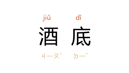 ⒈ 宴席时,每行完一个酒令,则饮干一杯酒,称为「酒底」。一指饮酒时的余兴。