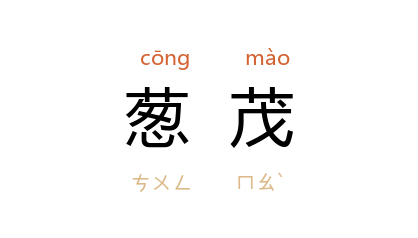 引清 沉起凤 《谐铎·雉媒》:“山尽处,倏有村落,槐阴葱茂中,亚字墻垣,连亙百步。”柳青 《铜墙铁壁》第十章:“川地里葱茂的庄稼那头, 无定河 上浮着一条清晨的白雾。”沙汀 《困兽记》七:“他们沿途边走边玩,在一座树木葱茂的堰沟边停了很久。”