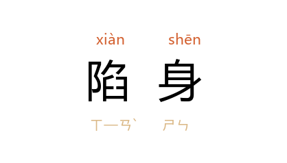 引北齐 颜之推 《颜氏家训·诫兵》:“如在兵革之时,构扇反覆,纵横説诱,不识存亡,强相扶戴:此皆陷身灭族之本也。”唐 杜牧 《雪中书怀》诗:“向来躐等语,长作陷身机。”