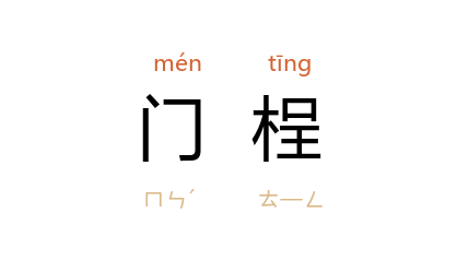 ⒈ 桯,床前长条状的凳子。门桯指门槛。