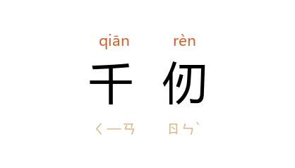 ⒈ 古制八尺为一仞,千仞形容非常高。