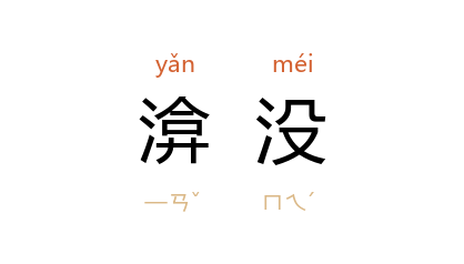 引宋 俞文豹 《吹剑四录》:“及次年结局,一水渰没,颗粒不收。”《元典章·户部九·劝农》:“田间沟渠,势要之家阻当不得,开挑纵自流通,却行渰没隣田。”清 刘大櫆 《送张闲中序》:“禹 疏九河,过家门而不入,而东南鉅野,无溃冒渰没之害者,七百七十餘年。”