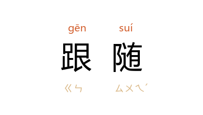近跟从 追随 随同 随从 尾随 跟包 跟班 随从