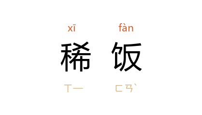 引《红楼梦》第七五回:“贾母 因问:‘拿稀饭来吃些罢。’”巴金 《灭亡》第十章:“我们的衙门里每天煮了十几大锅的稀饭施给穷人。”