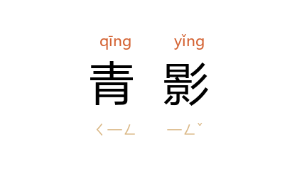 引宋 黄庭坚 《夏日梦伯兄寄江南》诗:“几度白沙青影里,审听嘶马自搘筇。”元 倪瓒 《赠岳松涧》诗:“林间萝蔦交青影,石上菖蒲开紫茸。”瞿秋白 《赤都心史》五:“一冬以来,足有四五个月,天天是凄清惨淡的天色,一片白漫漫的青影,到底使人烦闷。”
