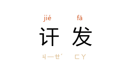 引《明史·舒化传》:“帝虑羣下欺罔,间有訐发,輙遣官逮捕。”清 蒲松龄 《聊斋志异·婴宁》:“邻人讼生,訐发 婴寧 妖异。”任乃强 《张澜先生轶事(一)》:“先生亦联合县绅讦发历年县府陋规,及 邓隆 的父亲同住署内,潜出招摇纳贿各事。”