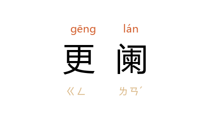 引唐 方干 《元日》诗:“晨鸡两遍报更阑,刁斗无声晓露乾。”宋 刘克庄 《军中乐》诗:“更阑酒醒山月落,綵縑百段支女乐。”《初刻拍案惊奇》卷二三:“如今已是更阑时候,妾身出来了,不可復进。”