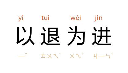⒈ 把退让看作前进。汉扬雄《法言·君子》:“昔乎颜渊以退为进,天下鲜俪焉。”李轨注:“后名而名先也。”后亦指表面退让,实际上以此作为进升的手段。