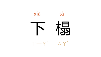 ⒈ 后汉 陈蕃 为 乐安 太守。郡人 周璆,高洁之士。前后郡守招命莫肯至,唯 蕃 能致之。特为置一榻,去则悬之。后 蕃 为 豫章 太守,在郡不接宾客,唯 徐穉 来特设一榻,去则悬之。见《后汉书·陈蕃传》及《徐穉传》。后遂谓礼遇宾客为“下榻”。