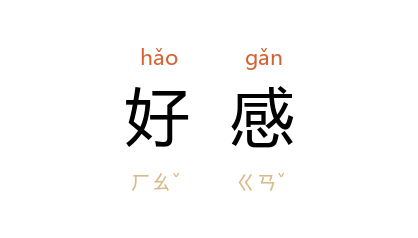 例如:「他的翩翩风采,赢得在场人士的好感。」