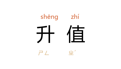 ⒈ 本国货币与外国货币的比值提升,称为「升值」。如新台币对美元汇率由二十六调为二十五时,于新台币为升值,而于美元则为贬值。