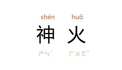 引南朝 梁简文帝 《咏萤》:“屏疑神火照,帘似夜珠明。”赵朴初 《访波罗奈城》诗之三:“此姓由来沦贱役,谁知神火有传薪。熊熊河岸焚身处,赫赫宫墙虎作閽。”自注:“亡者之家,遵教俗火化遗体,投骨灰于 恒河,火种则取于一旃陀罗姓之家。”