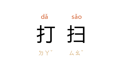 ⒈ 用扫帚、刷子清扫垃圾灰尘。