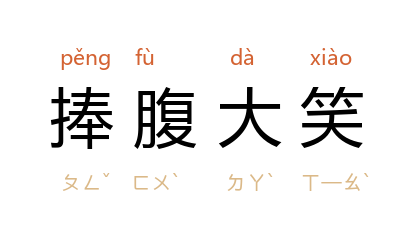 英语uproarious, hilarious, to split one's sides laughing, lit. to hold one's belly with both hands