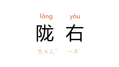 ⒈ 古地区名。泛指陇山以西地区。古代以西为右,故名。约当今甘肃六盘山以西,黄河以东一带。