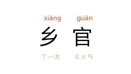 ⒈ 治理一乡事务的下级官吏,汉代以三老、有秩、啬夫、游微等为乡官,汉代将乡官之治处亦称为乡官,《汉书·黄霸传》颜师古注:“乡官者,乡所治处也”