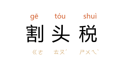 引梁斌 《红旗谱》三二:“街上又出了一宗割头税,杀一只猪要一块七毛钱,还要猪鬃、猪毛、猪尾巴、大肠头。”梁斌 《播火记》第二卷二二:“自从咱反割头税的时候, 贾老师 就给我们讲过,左等右等,等了多少年,才到了这个节骨眼儿上。”