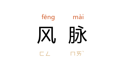 ⒈ 指宅基地或坟地周围的风向、水流等形势。迷信者认为“风水”的好坏能决定宅主或葬者一家的祸福。