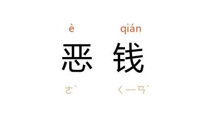 引《隋书·赵绰传》:“时上禁行恶钱,有二人在市以恶钱易好者,武候执以闻,上令悉斩之。”《旧唐书·宋璟传》:“又禁断恶钱,发使分道检括销毁之。”《文献通考·钱币一》:“其后姦滑稍多,渐磨鑢钱郭,取铜私铸,又杂以铅锡,递相倣傚,钱遂轻薄,乃下恶钱之禁。”