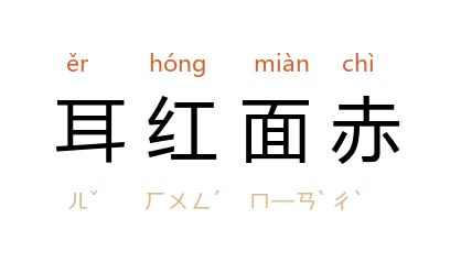 《初刻拍案惊奇·卷二〇》:「朝云耳红面赤,不敢言语。」