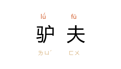 引清 舒位 《赵北口有作》诗:“驴夫狂走渔翁睡,动然居然各有因。”钱锺书 《围城》八:“这笨驴子以为走前一步,萝卜就能到嘴,于是一步再一步继续向前……它是否吃得到这串萝卜,得看驴夫高兴。”