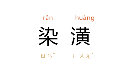 ⒈ 古时收藏文稿或装裱书画的一种处理方法。为防蠹先将纸放入黄檗汁中浸染,称染潢。