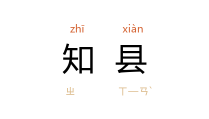 ⒈ 官名。掌管一县的政事。知县之名始于 唐,宋 代多以中央官员为县官,结衔称某官知某县事,至 明 始正式用作一县长官的名称, 清 代相沿不改,为正七品官。