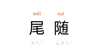 ⒈ 像尾巴样地跟随,比喻紧跟其后。