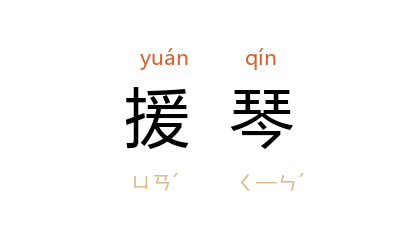 引《韩非子·十过》:“平公 曰:‘善。’乃召 师涓,令坐 师旷 之旁,援琴鼓之。”《三国志·蜀志·郤正传》:“雍门 援琴而挟説, 韩哀 秉轡而驰名。”唐 元稹 《莺莺传》:“君子有援琴之挑,鄙人无投梭之拒。”明 徐渭 《代贺张相公启》:“伏以孝有餘哀,终身却枣,礼缘中制,迨吉援琴。”